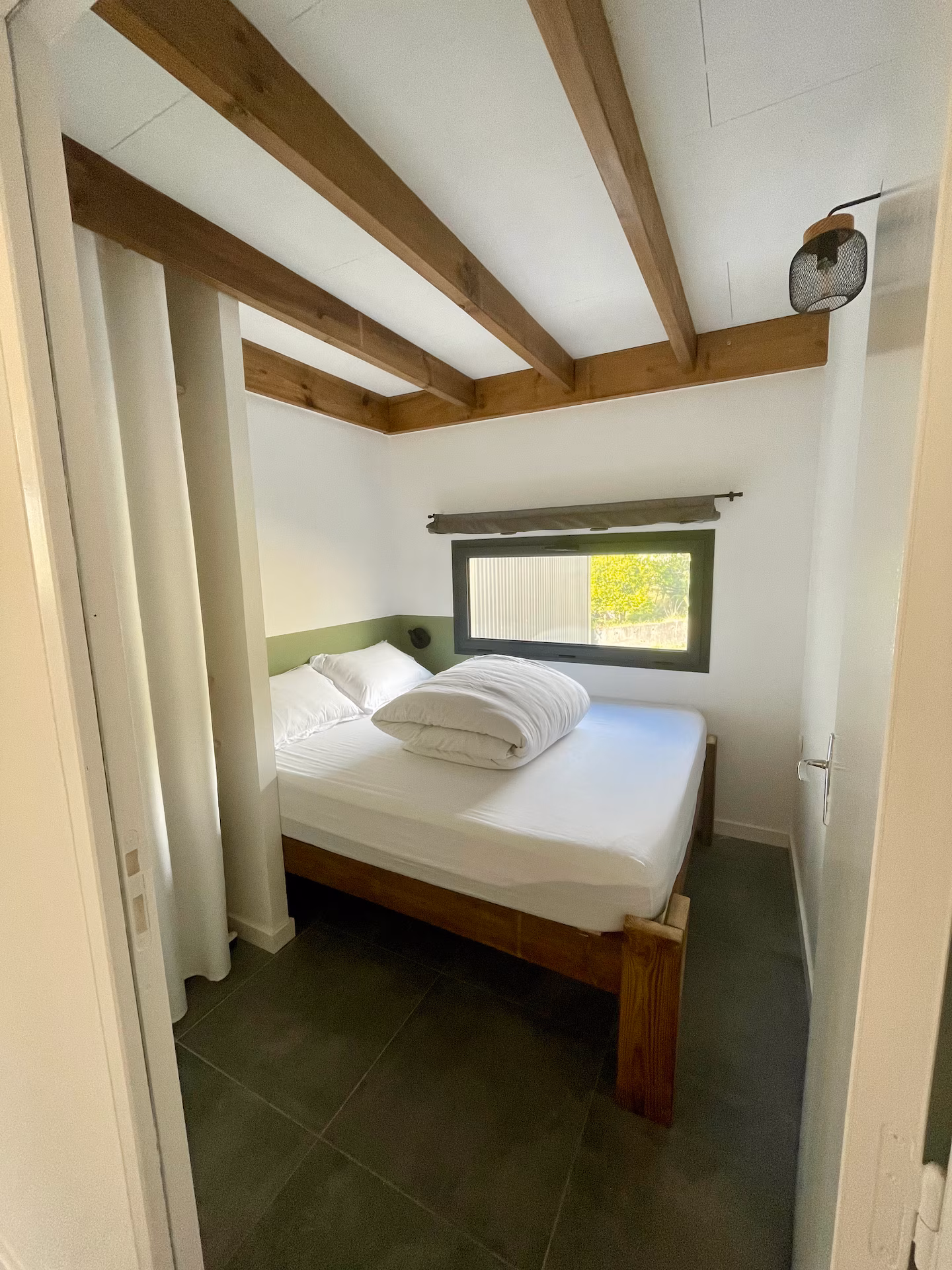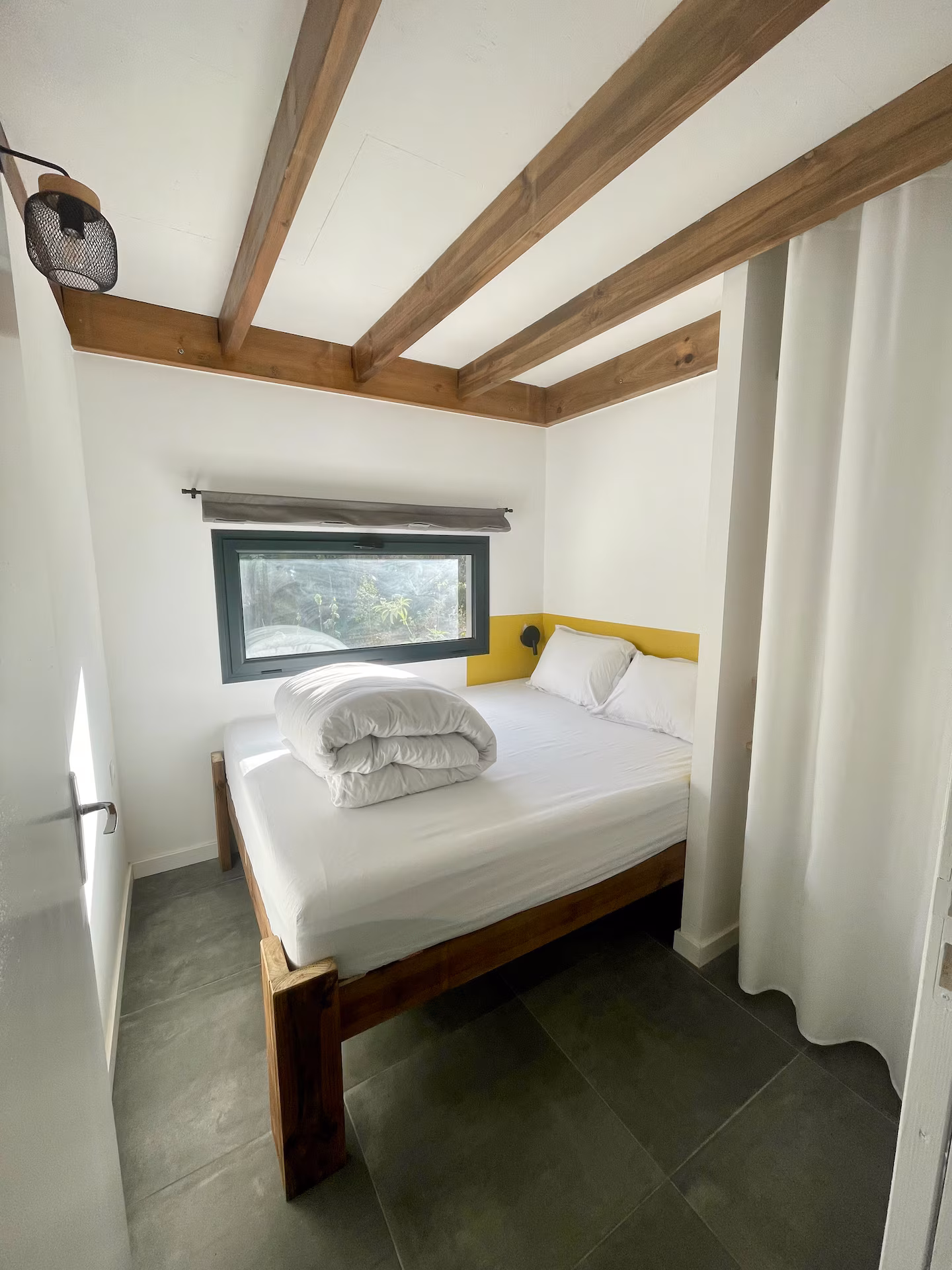 - 1 dortoir de 8 personnes dont 4 en lits superposés en bois massif avec liseuse et chargeur USB intégré pour chaque personne, ainsi que 2 lits de 140cm avec liseuse et chargeur USB intégré pour chaque personne. Un dortoir conçu sur mesure pour que chaque personne puisse avoir son intimité et son confort.