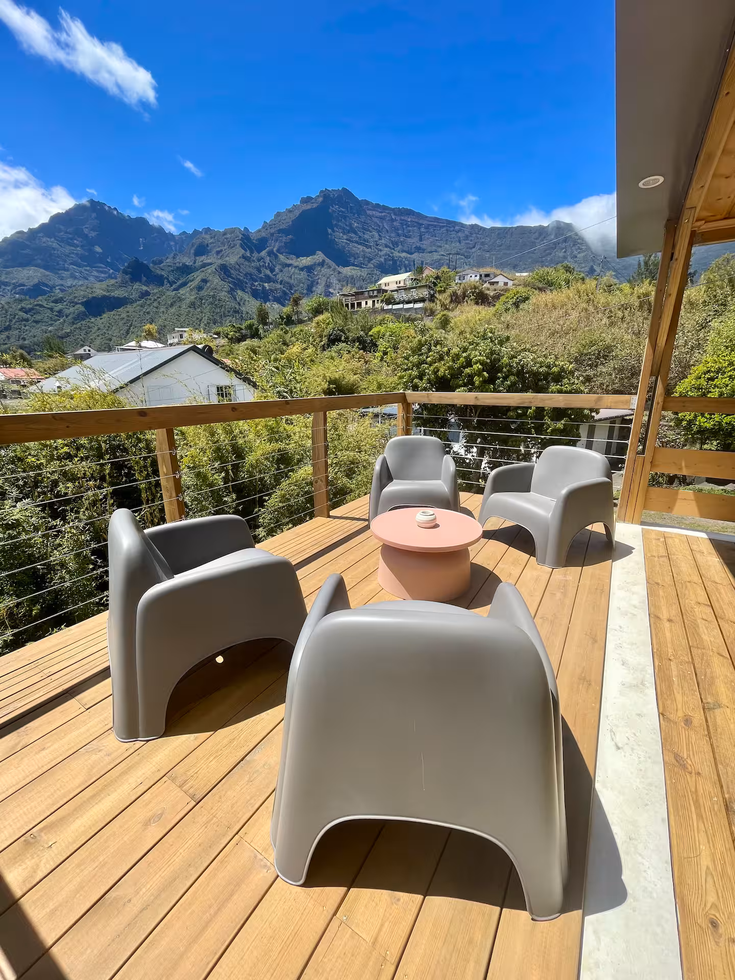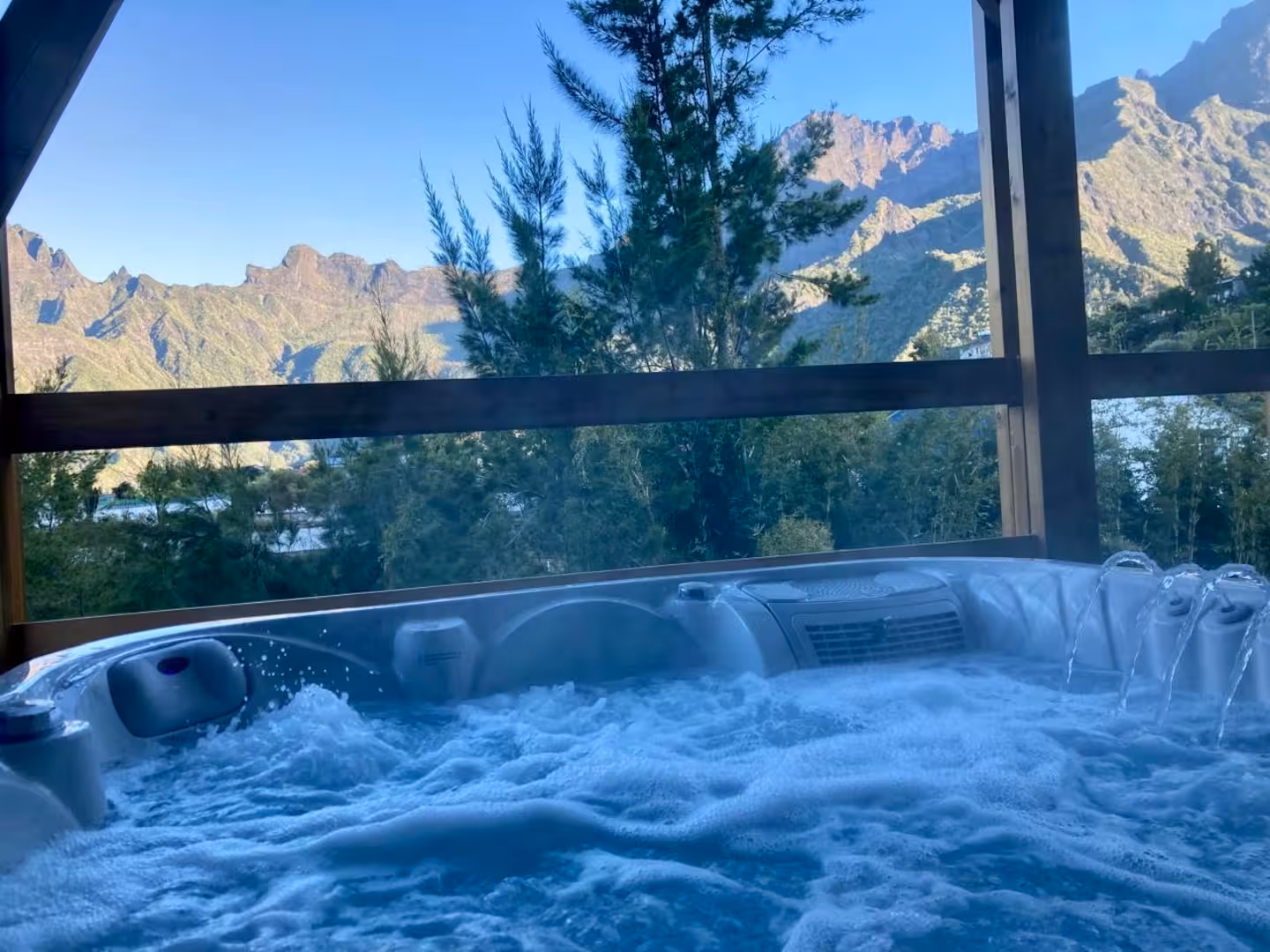 En réservant votre séjour à l’Echo des Remparts vous pourrez avoir accès à l’espace feu de bois et bien entendu profiter du jacuzzi sur le balcon avec une vue exceptionnelle sur le Taïbi, les 3 Salazes et le Piton des Neiges.